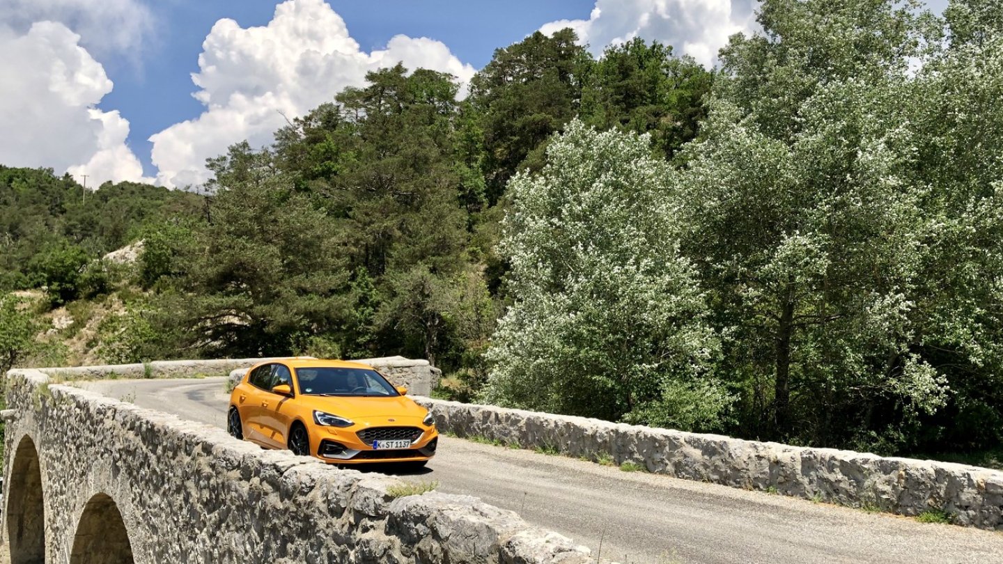 Auf diesem Terrain zeigt der neue Ford Focus ST, was er kann. Nicht steril und anonym mit einer Präsentation auf einer Rennstrecke, sondern auf öffentlichen Straßen, mit Schlaglöchern und sonstigen Widrigkeiten. Und stets unter Einhaltung der Verkehrsvorschriften.