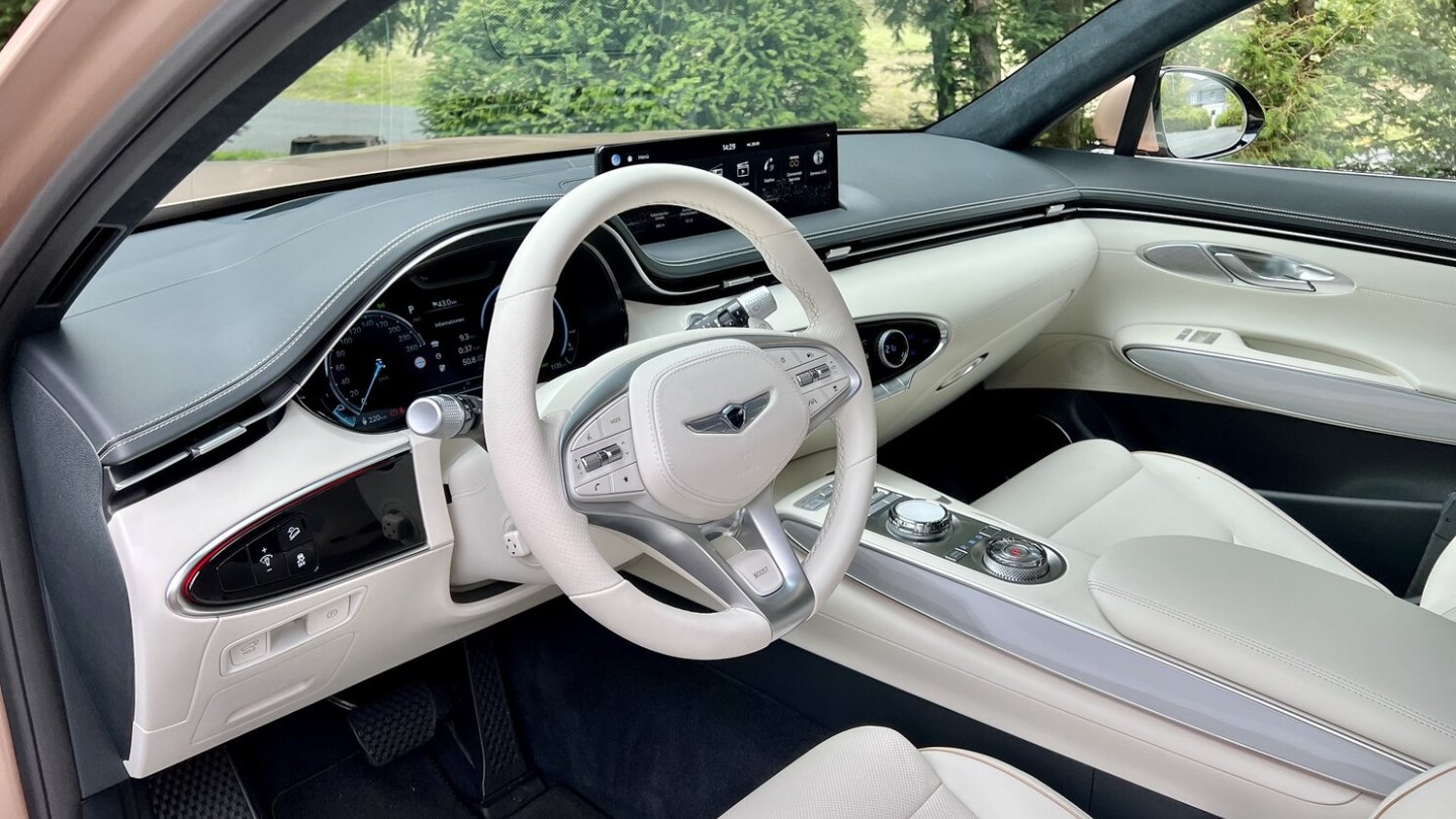 Leicht hecklastig und damit wunderbar kurvengierig zeigt sich der Genesis auch beim wilden Ritt über kurvige Landstraßen, auf denen man auch im Rahmen der erlaubten Geschwindigkeit Spaß haben kann. Klar, der GV60 ist konzeptbedingt etwas agiler. Aber auch hier im höheren SUV zeigt der 482,3 Kilogramm schwere Akku im Fahrzeugboden die Vorteile eines niedrigen Schwerpunkts.