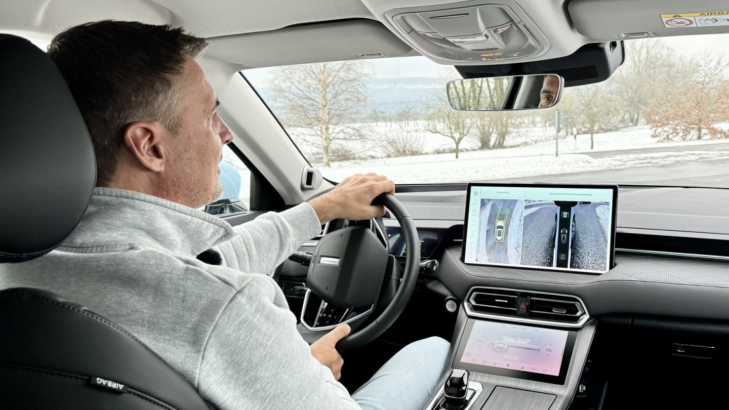 In der Allrad-Konfiguration, die auch der Testwagen hat, kommt eine 135 kW (184 PS) starke Maschine an der Hinterachse dazu. Die Systemleistung steigt auf 325 kW / 442 PS, das Drehmoment auf 685 Newtonmeter. Im Umfeld der Mittelklasse-SUV mit PHEV-Antrieb sind das schon Hausnummern. Aber wie bringt der GWM Wey 03 die Leistung auf die Straße?