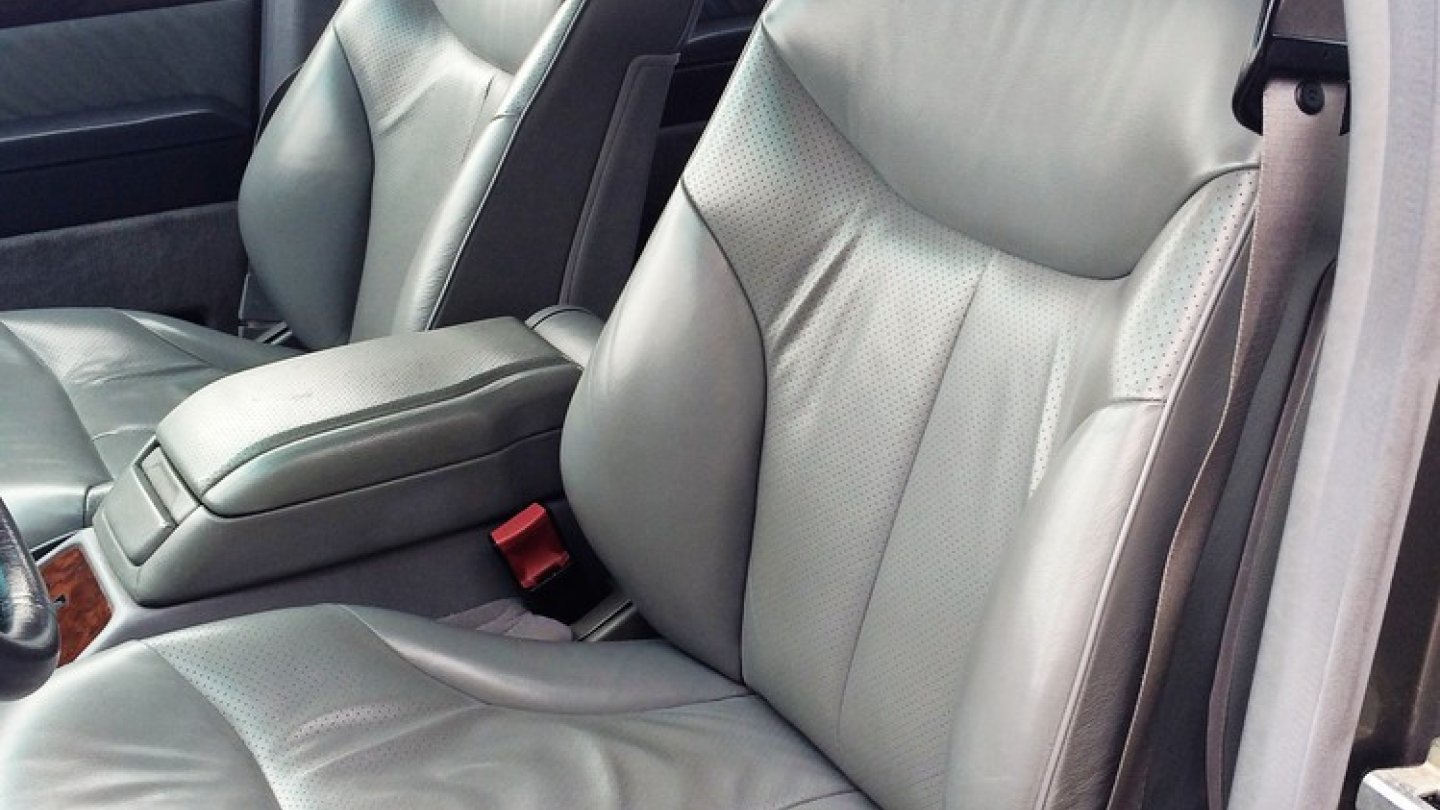 Innen empfängt uns der Chef-Benz mit extrem weichen Ledersesseln, die heute jeden Dynamikwahn widersprechen würden. Bezogen sind die Sitze mit hellgrauem Leder, das sehr angenehm mit der Außenfarbe harmoniert. Die Tierhaut ziert auch die Türverkleidung, hier aufwendig vernäht und geriffelt. Die Materialgüte und Verarbeitungsqualität überrascht auch heute noch. In der Türverkleidung, aber auch im Handschuhfach verbergen sich weitere Ablagen unter Klappen, alles ist komplett mit Teppich verkleidet.