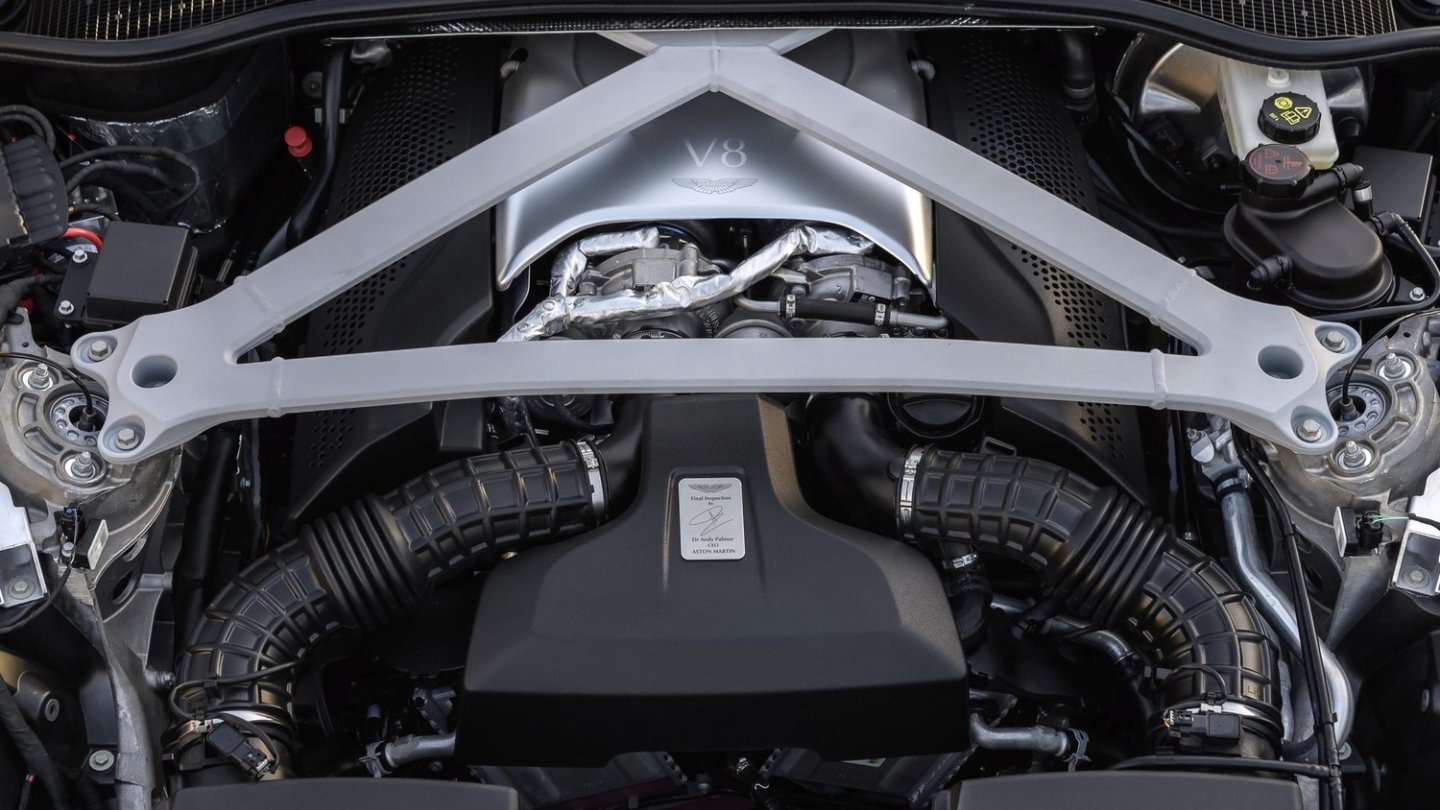 Im britischen Sportwagen haben die Aston Martin-Ingenieure nach einen Angaben den Achtzylinder modifiziert, um ihn „in Leistung und Sound unseren Stempel aufzudrücken.“ Auf der Motorplakette findet sich auch die Unterschrift des Aston Martin-Monteurs mit dem Hinweis der „Final Inspection“, der Abschlussinspektion.