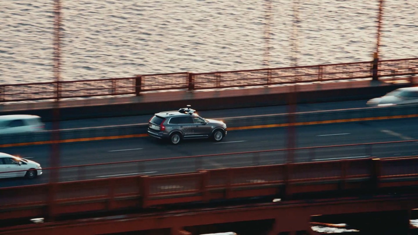 Uber hat im kalifornischen San Francisco einen Feldversuch mit autonom fahrenden Volvo XC90 gestartet. Die selbstfahrenden SUV wurden von Volvo gebaut und mit der der speziellen Hard- und Software versehen, die man an dem Dachaufbau des XC90 erkennen kann. Uber hat die umgerüsteten Autos vom Hersteller gekauft.