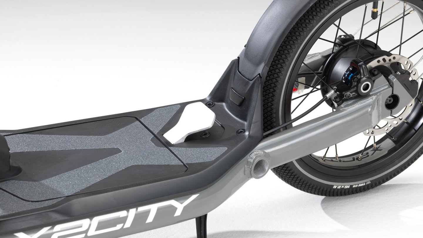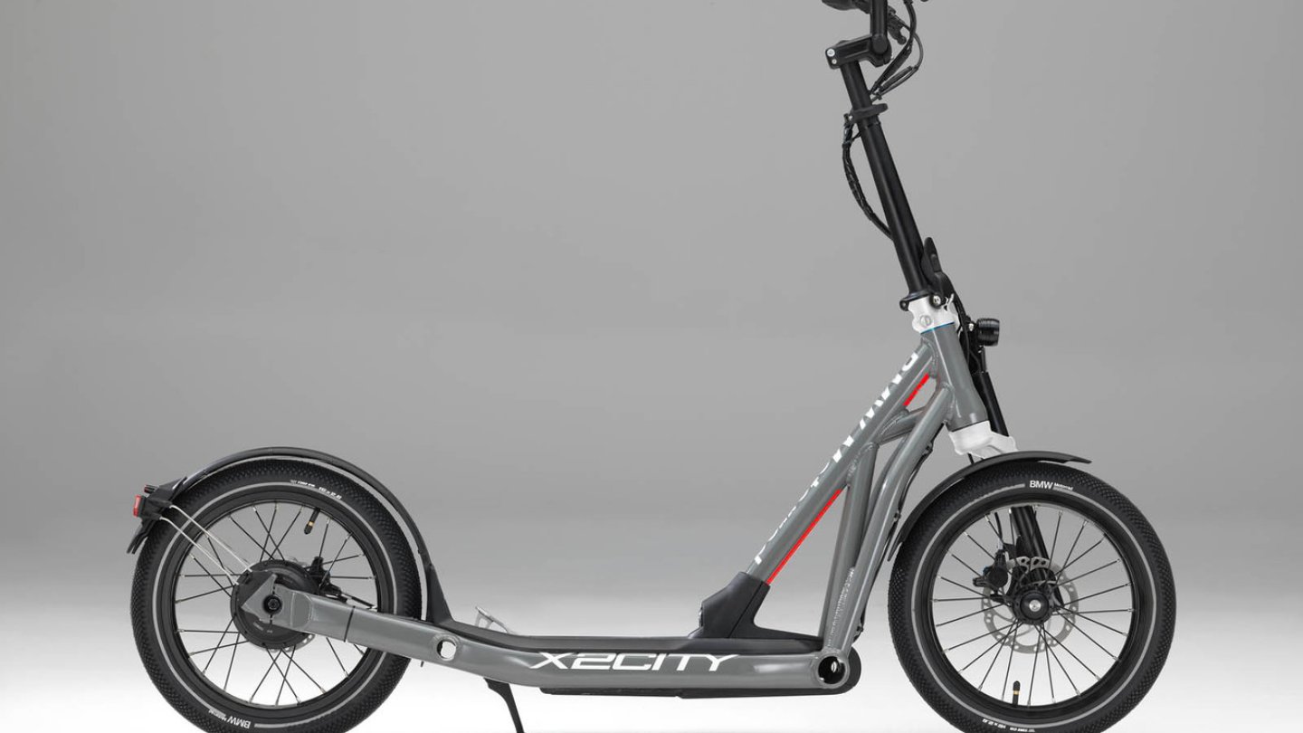 Das X2City genannte Zweirad für die „letzte Meile“ entspringt einer Kooperation von BMW Motorrad mit dem Fahrradhersteller ZEG (deren Marken sind u.a. Kettler, Hercules, Bulls und Pegasus). Der Fußkick bei der Fahrt auf dem Scooter wird von einem Elektromotor im Hinterrad unterstützt. Der bezieht seine Kraft aus einem 408 Wh großen Akku, der für eine Reichweite von 25 bis 35 Kilometern reichen soll. Da macht das Bein des tretrollernden Fahrers gewiss zuerst schlapp. 2,5 Stunden muss die leere Batterie dann an der Haushaltssteckdose hängen, um wieder voll einsatzbereit zu sein.
