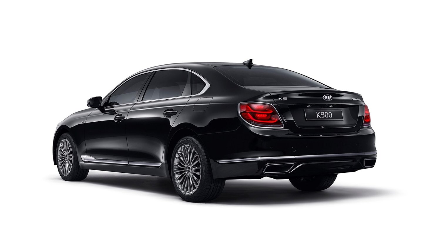 Auch das Heck zeigt, dass der K900 lieber repräsentieren und komfortabel betten will als mit Dynamik aufzutrumpfen. Den Antrieb besorgen zwei V6-Motoren mit 3,3 und 3,8 Litern Hubraum, darüber steht ein fünf Liter großer V8. Leistungsdaten sind noch nicht bekannt.