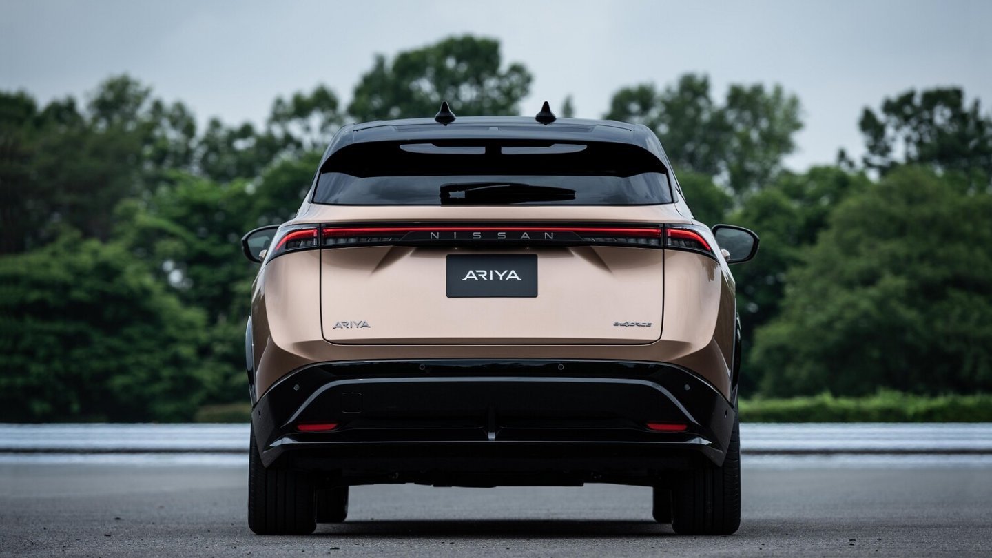 Mit dem Ariya will Nissan eine neue Markenidentität für elektrifizierte Modelle einführen, spricht beim Design vom „zeitlosen japanischen Futurismus“. Einen Kühlergrill im klassischen Sinn gibt es nicht mehr, die Frontmaske ist geschlossen. Darunter verbergen sich die Sensoren der Fahrassistenten und ein dreidimensionales Muster. Das Markenlogo besteht aus 20 LED-Elementen. Zusammen mit dem unteren Teil der Frontmaske leuchtet es, sobald der Ariya fahrbereit ist.