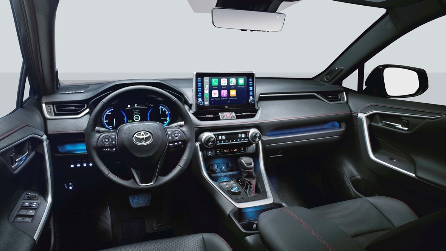 Zur Serienausstattung des RAV4 Plug-in Hybrid zählt Toyota u.a. 18-Zoll-Leichtmetallfelgen, einen schlüssellosen Zugang, Zweizonen-Klimaautomatik, Sitzheizung in beiden Reihen und ein Infotainmentsystem mit DAB+, Apple CarPlay und Android Auto sowie einem 9-Zoll-Touchscreen. Scheinwerfer und Rückleuchten arbeiten mit LED-Technologie.
