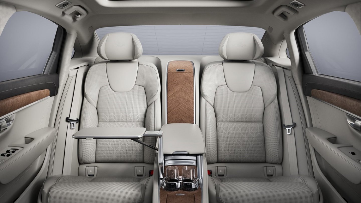 Dazu passend steckt im Volvo S90L Excellence eine Luftfederung an der Hinterachse mit adaptiven Dämpfern. Außengeräusche sollen durch eine Akustikverglasung mit dickeren Seitenscheiben außen vor bleiben. So lässt sich das Soundsystem mit 19 Lautsprechern und 1.400 Watt Leistung besser genießen. Auch für Wohlfühlklima sorgt der lange Schwede aus China. In die Vier-Zonen-Klimaautomatik ist ein Ionisator integriert, die die Innenraumluft reinigt.