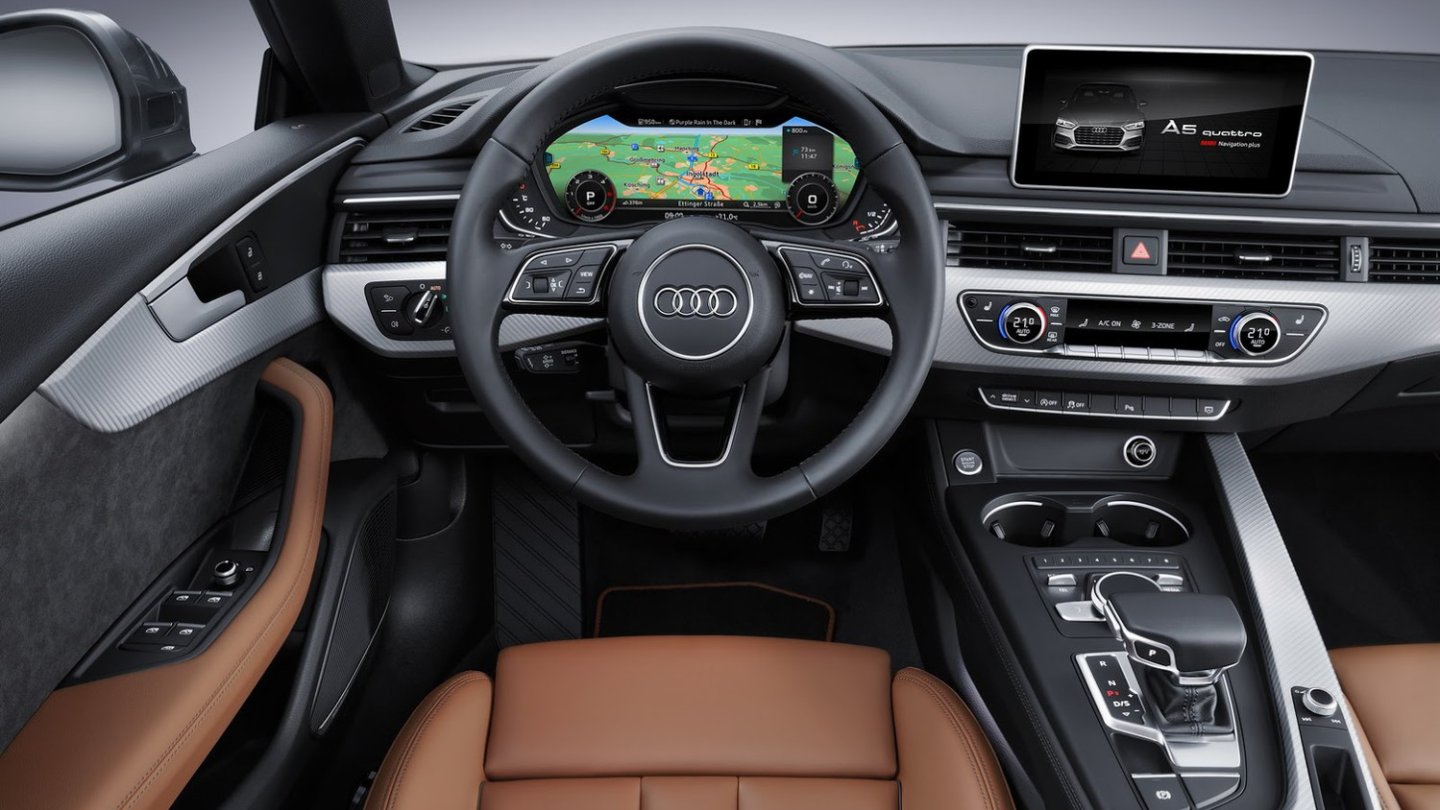 Wenn man sich außen irgendwann mal sattgesehen hat, entdeckt man innen das bekannte A5/A5-Cockpitdesign, natürlich das optionale Virtual Cockpit Display und neben mehr Schulterbreite auch 2,4 Zentimeter mehr Beinraum für die Fondpassagiere.
