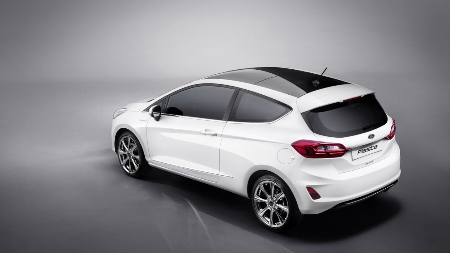 Während die Front und auch das Profil mit der ansteigenden Fensterlinie den Vorgänger zitieren, geht der Fiesta am Heck neue Wege. Horizontal angeordnete Heckleuchten unterscheiden ihn deutlich von der aktuellen Generation.