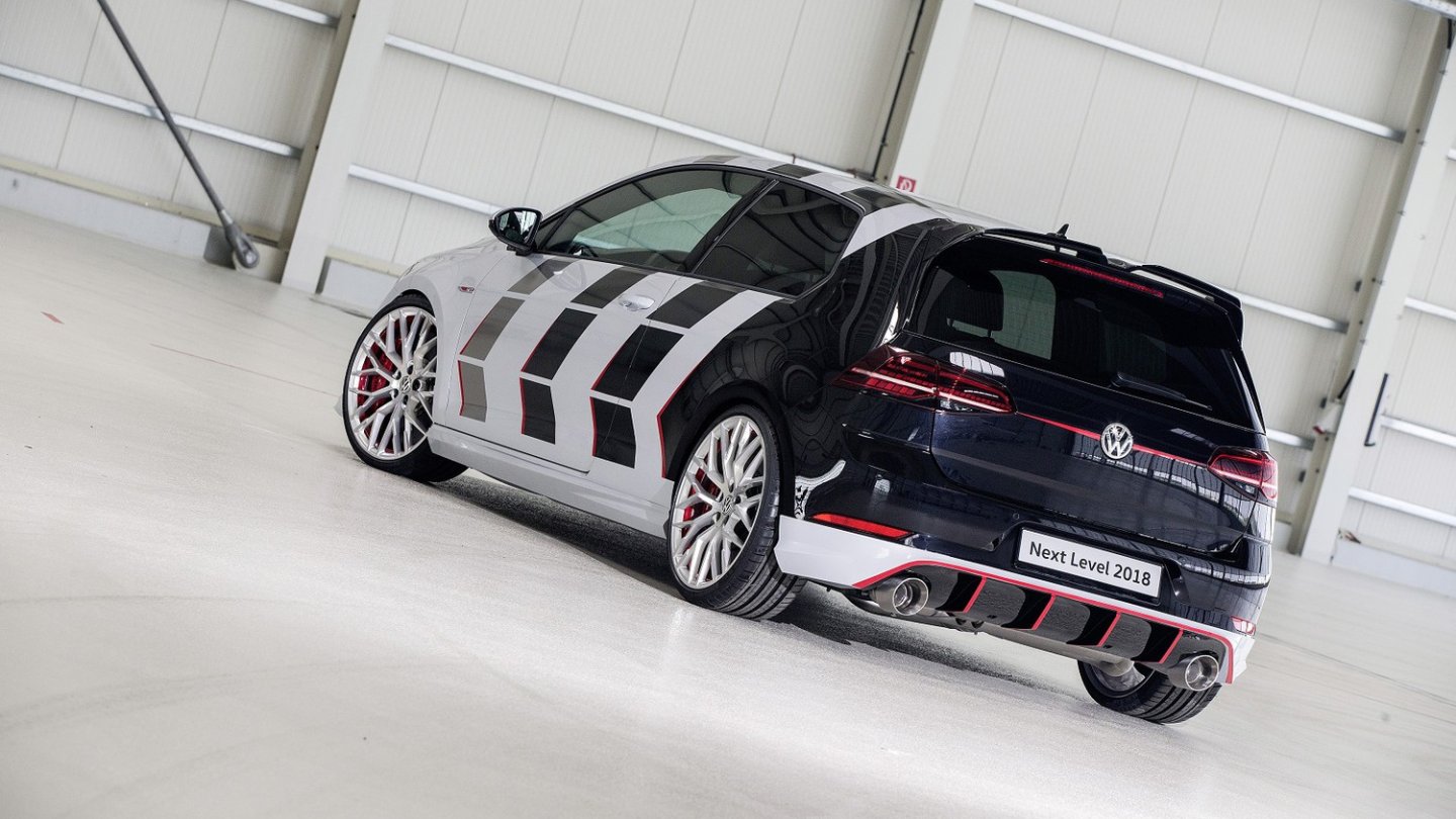 Die meisten Blicke dürfte der Golf GTI Next Level auf sich ziehen, der am Stammsitz Wolfsburg entstand. 15 Azubis, vom Mechatroniker über Lackierer bis zum Büromanagement, entwickelten in knapp neun Monaten den bislang stärksten GTI. Sein 2.0 TSI-Motor leistet 302 kW / 411 PS. Auf der zweifarbig lackierten Karosserie wurden zusätzlich Folien aufgeklebt. Das Bodykit des dreitürigen Golf GTI entstand nach dem CAD-Design am 3D-Drucker. Innen gibt es einen ausfahrbaren LED-Monitor.