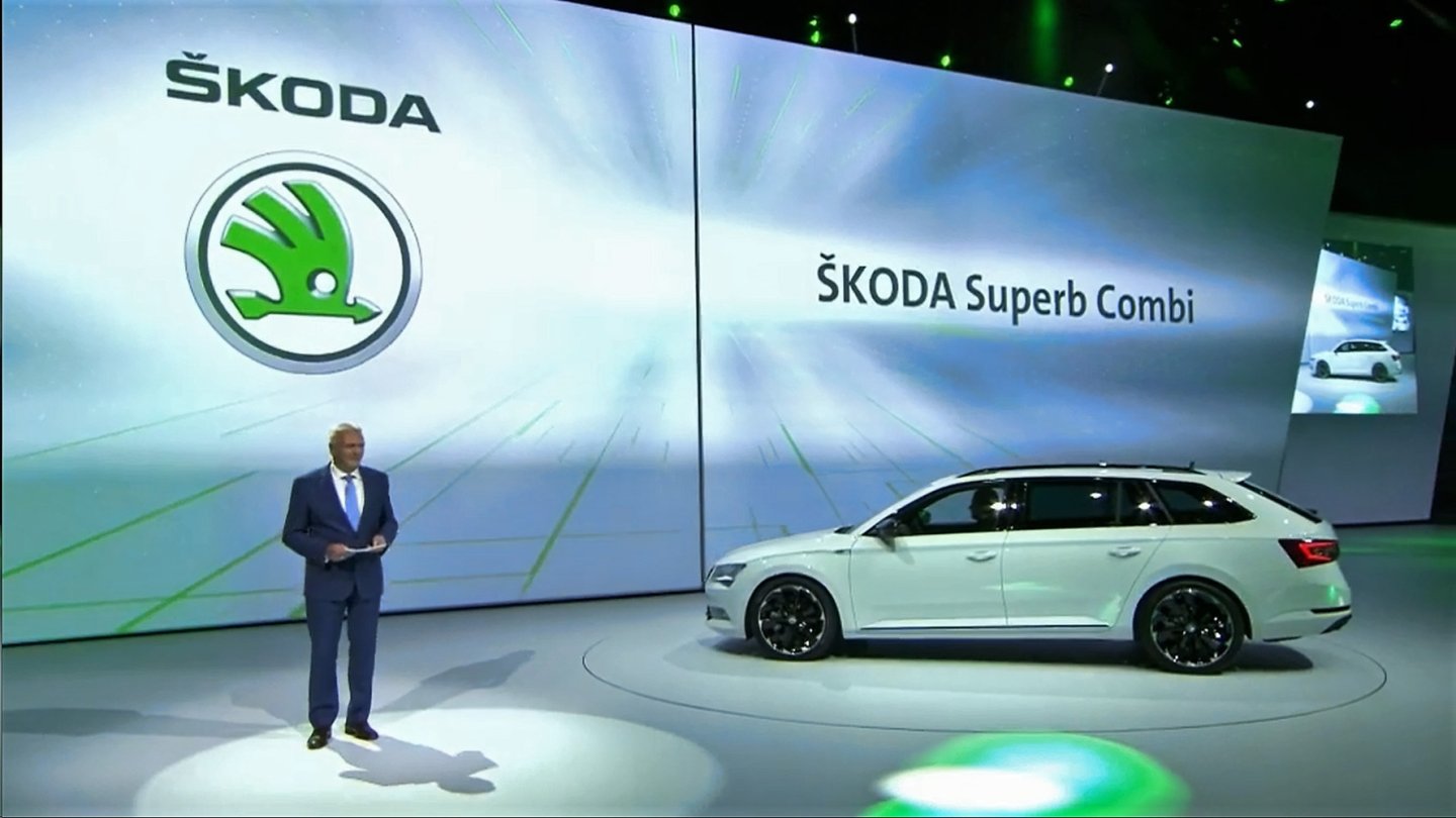 …auch gerne mit „C“ geschrieben. Die Tschechen haben kurz vor dem Händlerstart ihre neue Cash Cow dabei, den Superb Combi. Er zeigt sich das erste Mal als SportLine, mit schwarzen 19-Zoll-Felgen, schwarzem Kühlergrill und dunkeln Auspuffblenden, zumindest bei der 280 PS-TSI-Version. An den Kotflügeln trägt er eine Chromspange (wie all Superb in China), die das SportLine-Emblem darstellt. Eine Studie zum neuen großen SUV darf Skoda ja nicht zeigen, aus Rücksicht auf die Konzernmutter…