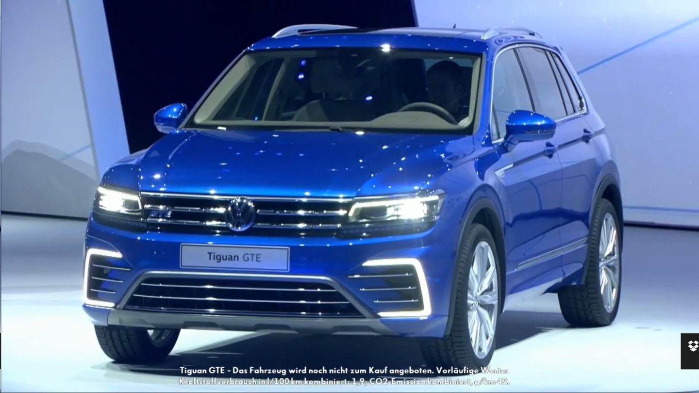 Der Tiguan fährt vor. Wo ist denn der neue CEO Herbert Diess? Technikvorstand Heinz-Jakob Neusser stellt stattdessen den Tiguan vor. Alle Details findet ihr hier. Schick ist der, vor allem als R-Line. Denkt man, bis der GTE vorfährt, der nochmals sportlicher und dynamischer wirkt, was vor allem an den großen LED-Tagfahrlichtbögen liegt. Aha, jetzt kommt Herbert Diess doch noch. Erster Auftritt als Volkswagen Vorstandsvorsitzender. Er spricht von einer Führungsrolle und nimmt dabei das Wort „Volumensegment“ in den Mund. Bei all´ dem Premiumstreben eine ungewohnte Wortwahl, aber sympathisch. Im nächsten Atemzug ist der Tiguan GTE „bezahlbar“. Wir sind gespannt, gut, Herr Diess ist vielleicht noch BMW-Preise gewohnt aber mal sehen was die Preisliste im Frühjahr 2016 zeigt.
