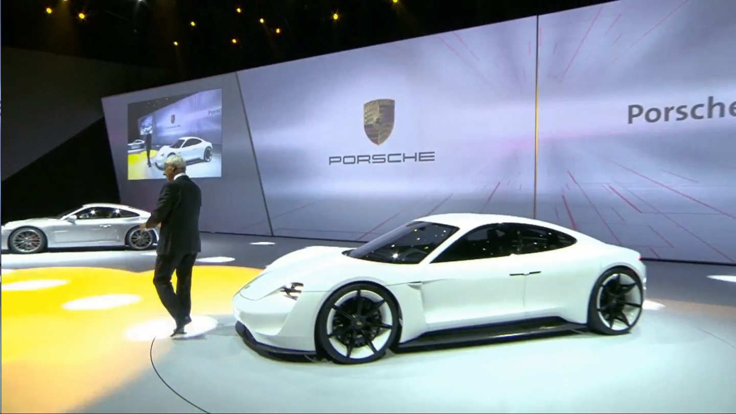 Der neue 911 zeigt sich, dabei wird der Downsizing-Turbomotor wird geschickt verteidigt. „Es kommt darauf an, wie er fährt, und nicht, mit was er fährt“. Und zumindest fährt er ein Stück auf die Seite, denn die eigentliche Premiere rollt herein.