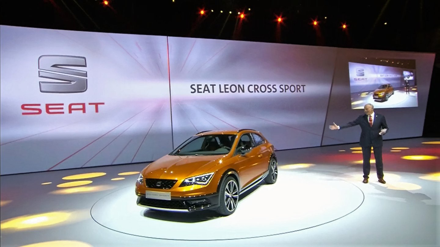 Jürgen Stackmann zeigt den Leon Cross Sport, eine Studie, die als „Urban Rebel“ die Marke Seat mit dem Thema SUV weiter in Verbindung bringen soll. Jürgen Stackmann erwähnte den ersten SUV der Marke ab Frühjahr 2016. Dass der Leon Cross Sport direkt nach der Messe in die Prototypengarage gestellt wird, ist aber bereits klar. SEAT ohne echte Premiere also als Vorband an diesem Festivalabend, gefolgt von den Briten…
