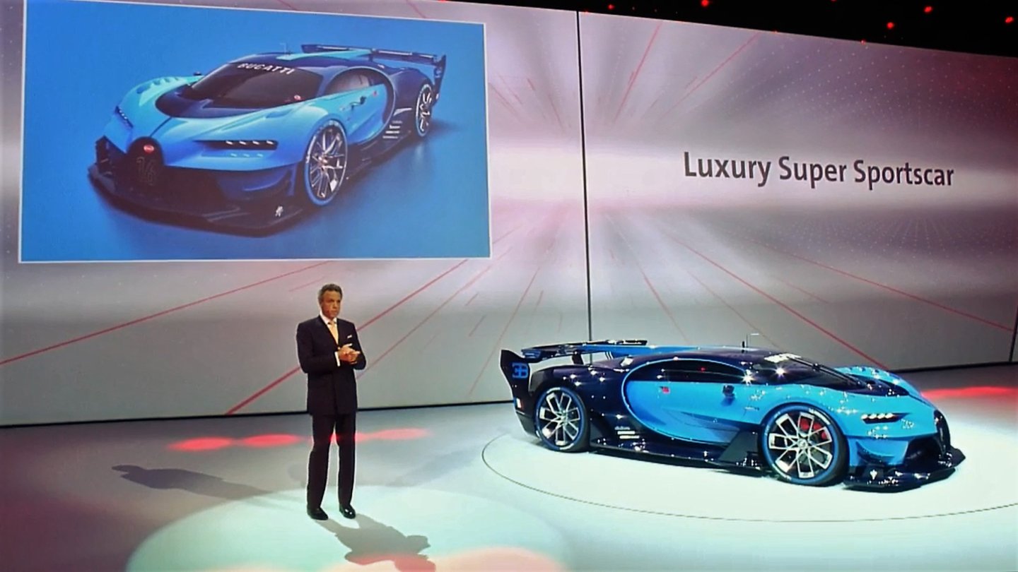 Jetzt kommt Papa. Der superste aller Supersportwagen, der Bugatti Veyron, bekommt in 2016 einen Nachfolger. Da das neue Modell erst mal als Computerspielfahrzeug getarnt wird, verwandelt sich die Leinwand in eine Computerspielrennstreckestrecke, sehr gut gemacht. Wolfang Dürheimer bedauert die „Exklusivität der Marke“ mit nur 450 gebauten Veyron, sondern will die Marke öffnen. Aber keine Sorge, es kommt kein SUV. Sondern eben dieses Auto als Auswahloption im Computerspiel „Gran Turismo“, daher auch der Name: Der neue Chiron heißt noch nicht so, sondern „Vision Gran Turismo race-car“. Also noch Baustelle bei Bugatti. Was uns zu den Baustellenautos bringt (okay, es gab schon mal bessere Überleitungen)…