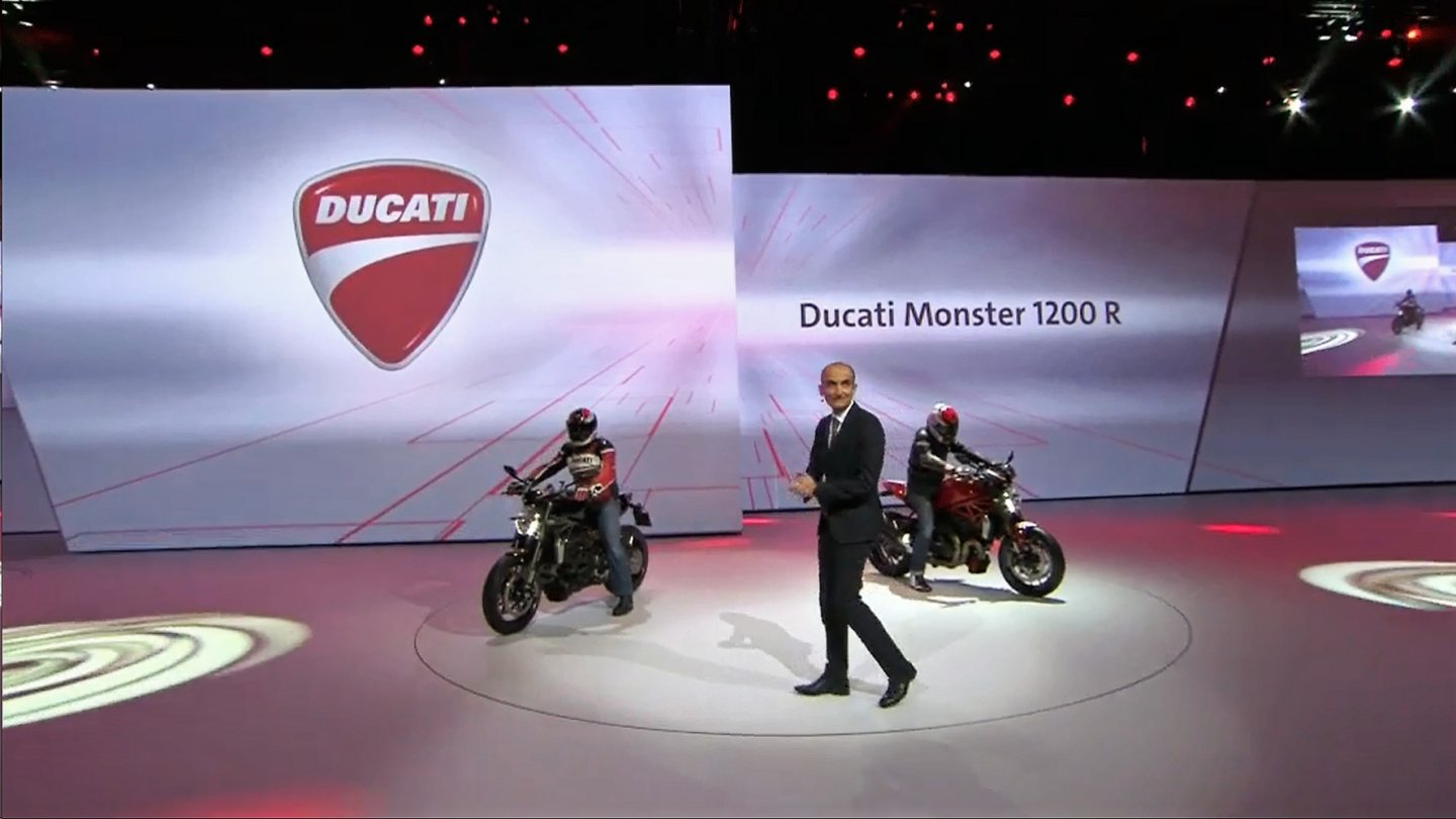 Die IAA ist zwar eine PKW-Messe, aber Emotionen und italienische Lässigkeit darf schon sein an so einem Abend. Gezeigt wird die neue Monster. Aha. Da ich von Motorrädern leider wenig Ahnung und keine Meinung habe, lasse ich das mal so stehen. Dann lieber Kombis…